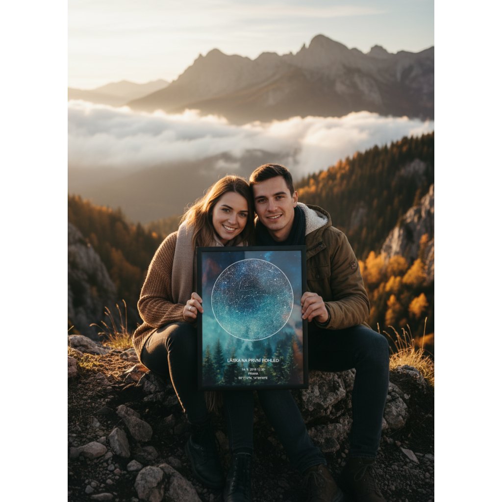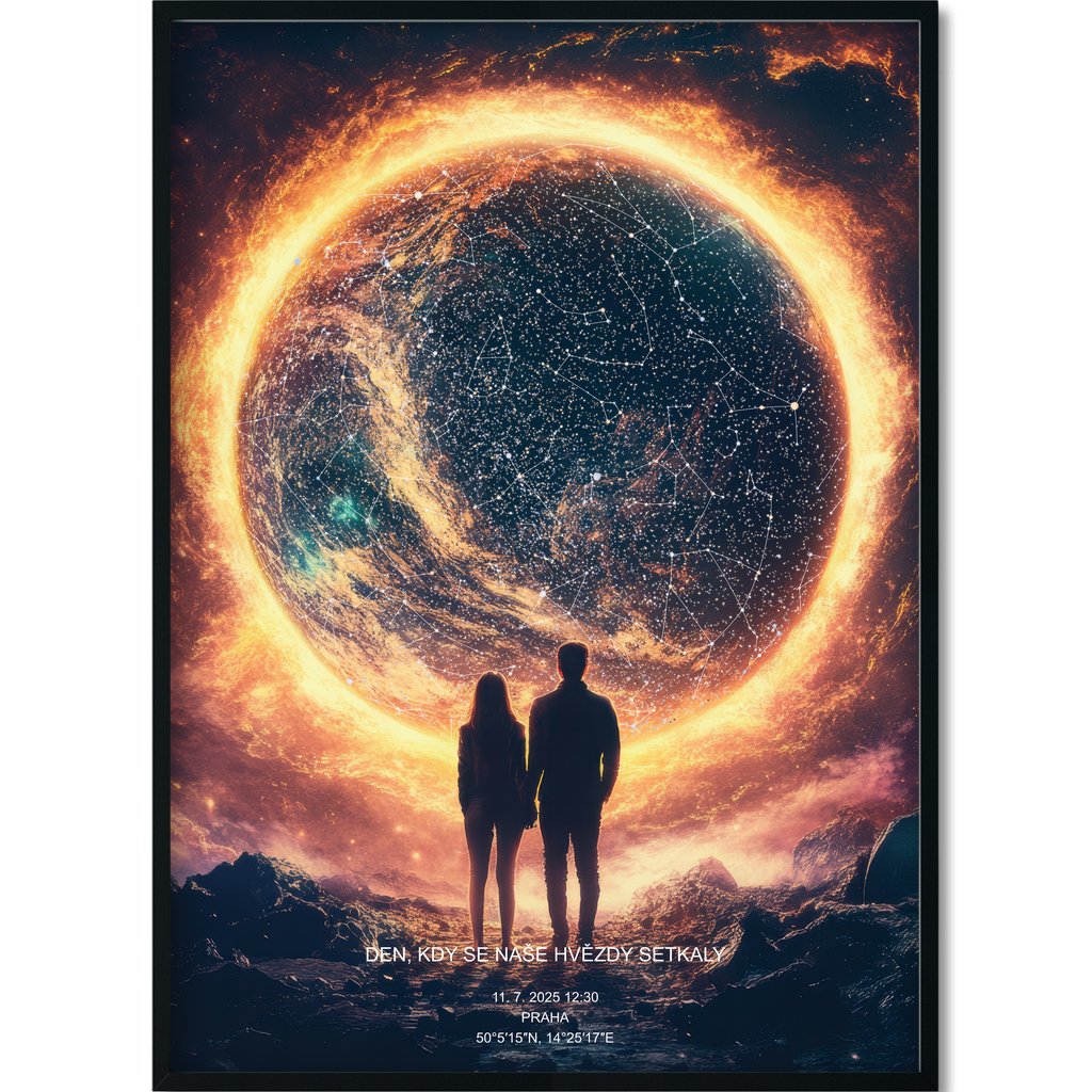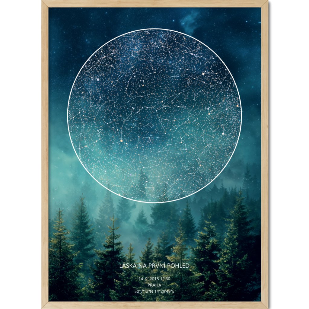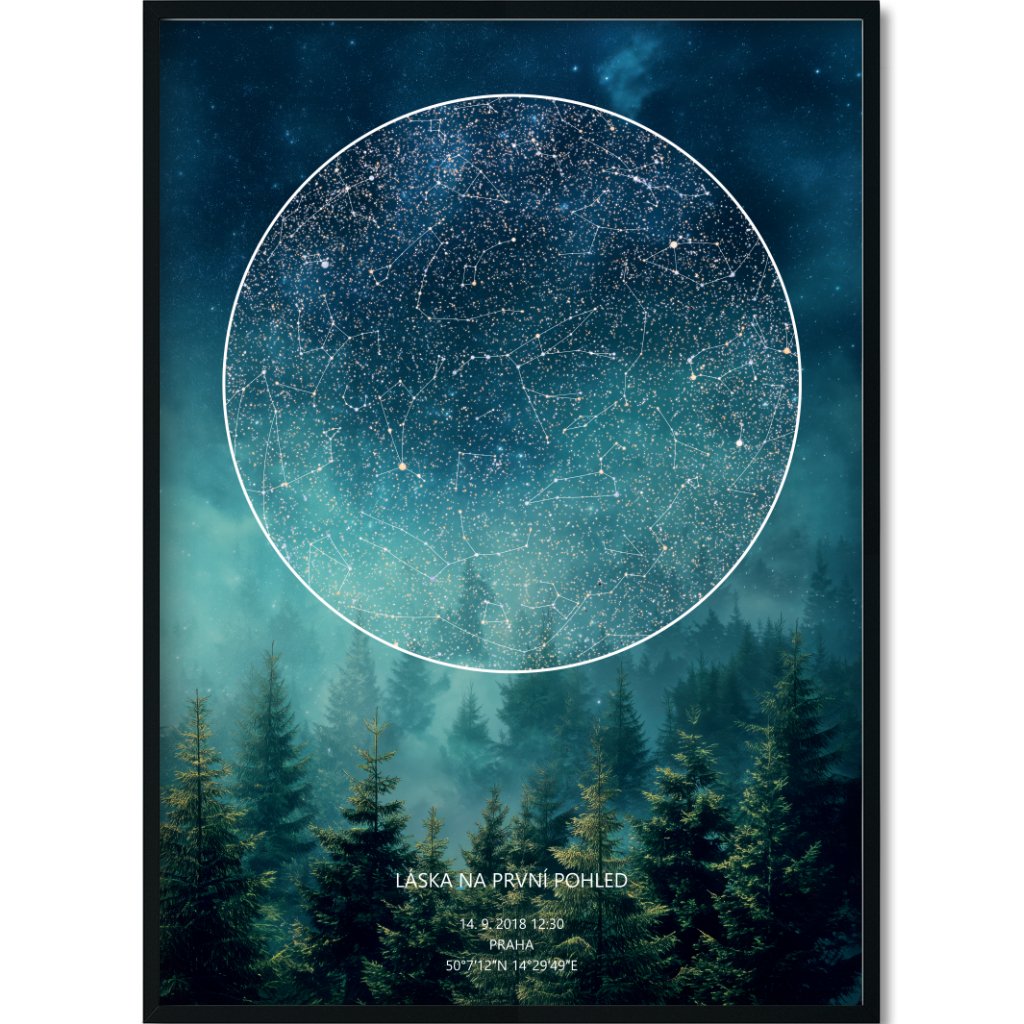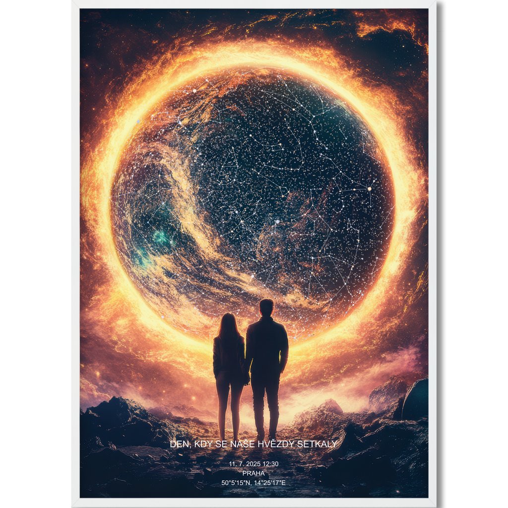 Rádi vám k vašim osudovým momentům vytvoříme plakát vaší Hvězdné mapy - reálné konstelace hvězd, která nad vámi v daný okamžik zářila.